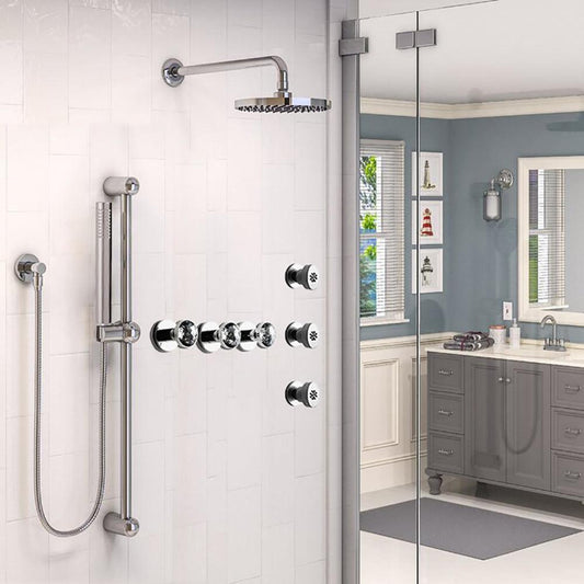Fontana Bravat Chrome Wall-Mounted Round Shower Set With Valve Mixer 3-Way Concealed and 3-Body Jets