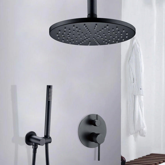 FontanaShowers Verona Creative Luxury 10" Dark Oil Rubbed Bronze Round Ceiling Mounted Shower Head Hot and Cold Mixer Rainfall Shower System With Hand Shower