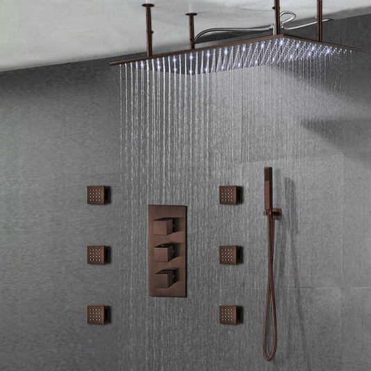 Fontana Diadema Creative Luxury Large Light Oil Rubbed Bronze Rectangular Ceiling Mounted LED Solid Brass Shower Head Rain Shower System With 6-Jet Body Sprays and Hand Shower