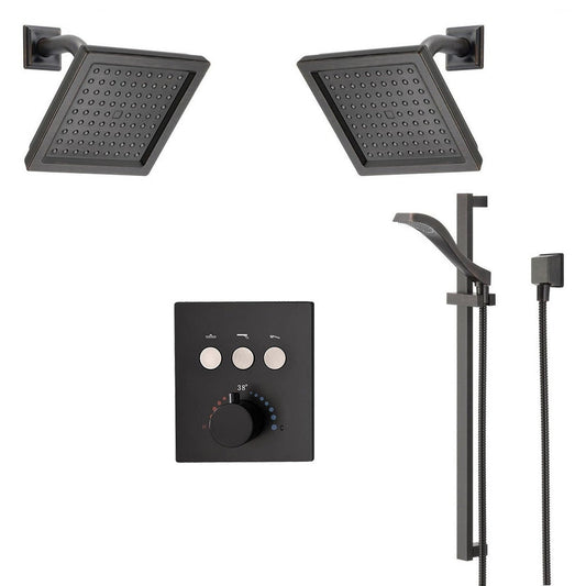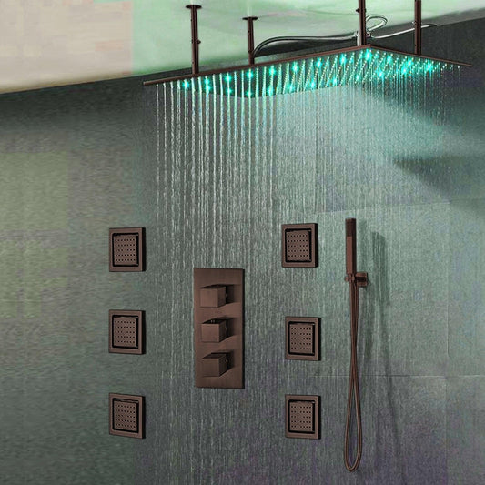Fontana Martinique Creative Luxury Large Light Oil Rubbed Bronze Rectangular Ceiling Mounted LED Solid Brass Shower Head Rain Shower System With 6-Jet Body Sprays and Hand Shower