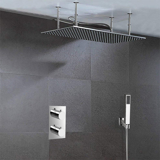 Fontana Genoa Sandino Creative Luxury Stainless Steel Rectangular Ceiling Mounted Thermostatic Rainfall LED Shower System With Hand Shower