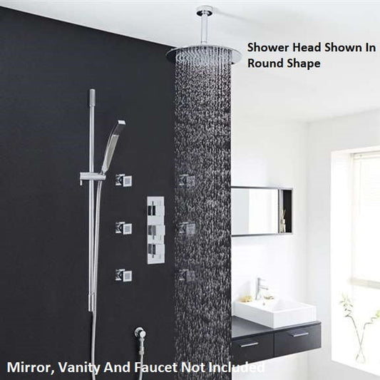 FontanaShowers Atlantic Creative Luxury 12" Large Chrome Square Ceiling Mounted Massage Shower System Without Water Powered LED Lights, 6-Jet Body Sprays and Hand Shower