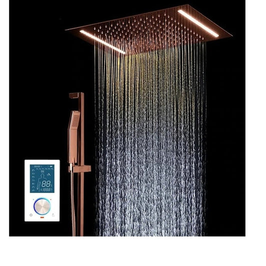 FontanaShowers Creative Luxury Light Oil Rubbed Bronze Rectangular Ceiling Mounted Rainfall Shower System With Smart & Intelligent LED Touch Control and Hand Shower