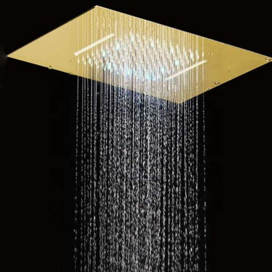 FontanaShowers Creative Luxury Gold Recessed Ceiling Mounted Color Changing Water Powered LED Shower System With Adjustable 6-Jet Body Sprays and Hand Shower