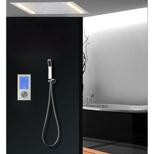 FontanaShowers Emilia Creative Luxury Chrome Ceiling Mounted Posh LED Thermostatic Rainfall Bathroom Shower System With Smart Screen Touch Digital Control and Hand Shower