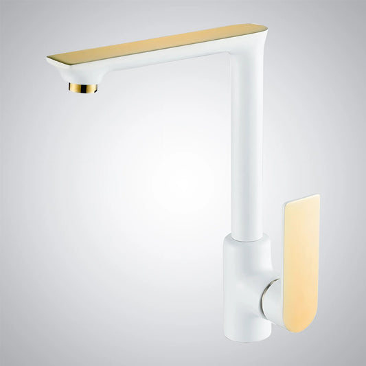 Fontana Huelva Water Mixer Crane Deck Mounted White Gold Faucet