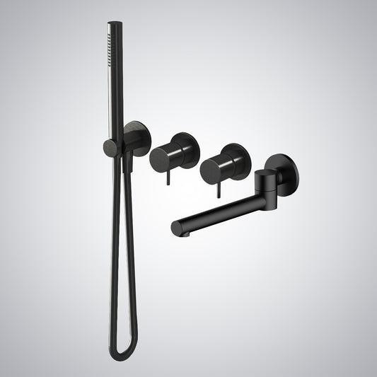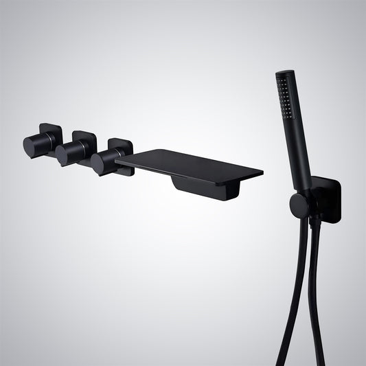 Fontana Ocana Three Handle Wall Mounted Matte Black Bathtub Faucet