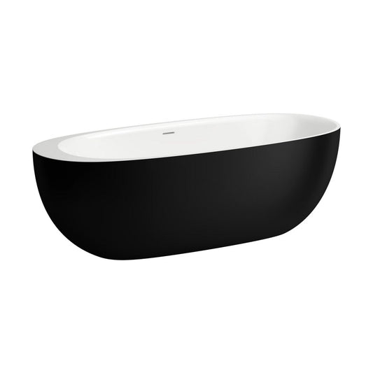 Laufen IlBagnoAlessi 32" x 73" Oval Matte Satin White Freestanding Bathtub With Matte Black Outer Finish