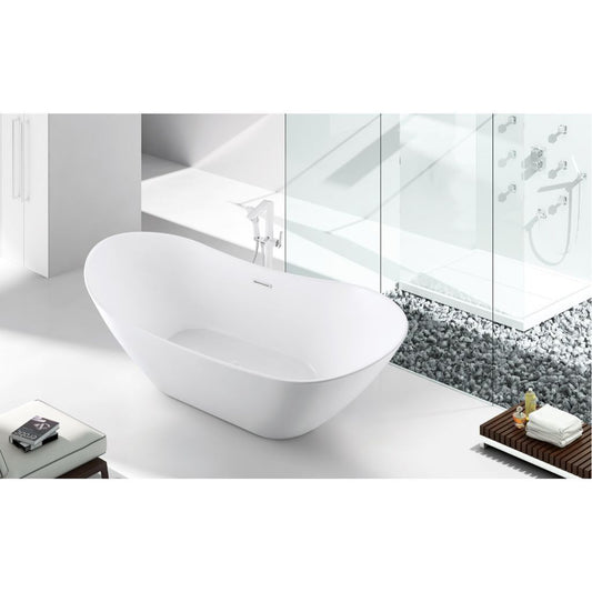 Vinnova Angelica 67" x 32" White Oval Freestanding Soaking Acrylic Bathtub