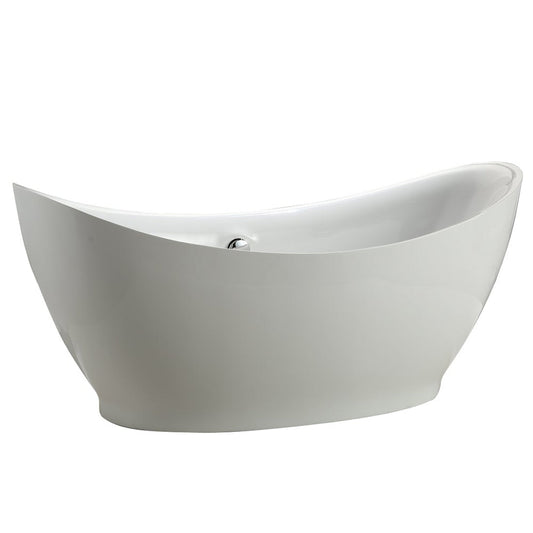 Vinnova Jacqueline 69" x 30" White Oval Freestanding Single Slipper Soaking Clawfoot Acrylic Bathtub