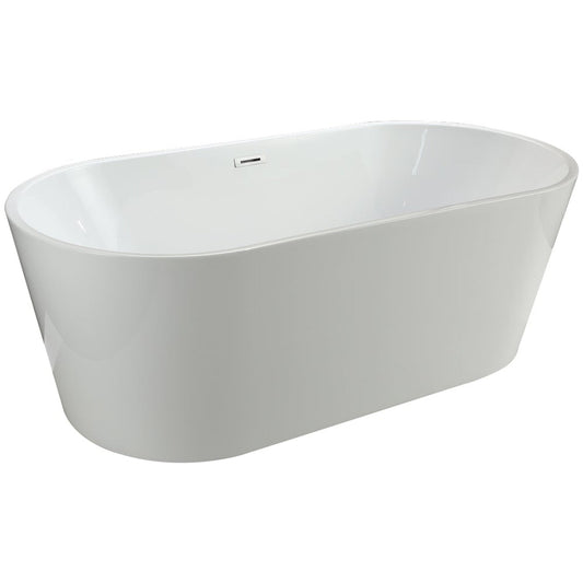 Vinnova Angelica 59" x 32" White Oval Freestanding Soaking Acrylic Bathtub