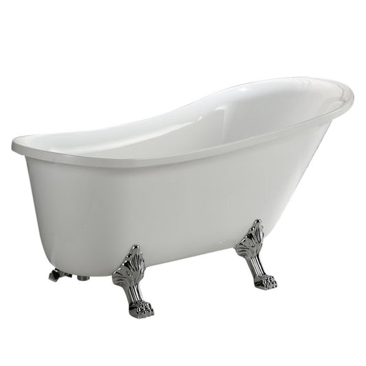 Vinnova Jacqueline 63" x 28" White Oval Freestanding Single Slipper Soaking Clawfoot Acrylic Bathtub
