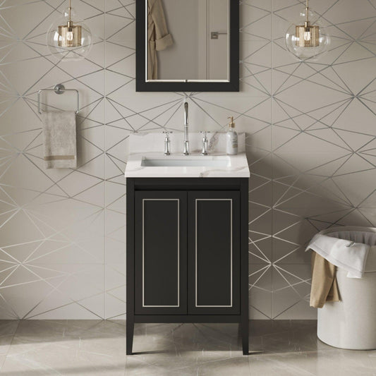 Hardware Resources Jeffrey Alexander Percival 24" Black Freestanding Vanity With Calacatta Vienna Quartz Vanity Top, Backsplash and Rectangle Undermount Sink