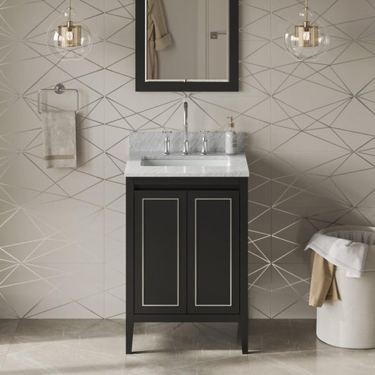Hardware Resources Jeffrey Alexander Percival 24" Black Freestanding Vanity With White Carrara Marble Vanity Top, Backsplash and Rectangle Undermount Sink