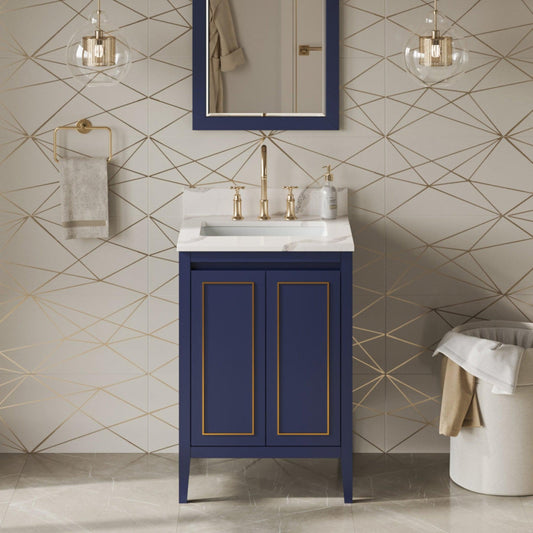 Hardware Resources Jeffrey Alexander Percival 24" Hale Blue Freestanding Vanity With Calacatta Vienna Quartz Vanity Top, Backsplash and Rectangle Undermount Sink