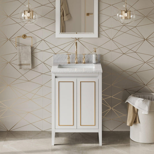 Hardware Resources Jeffrey Alexander Percival 24" White Freestanding Vanity With White Carrara Marble Vanity Top, Backsplash and Rectangle Undermount Sink