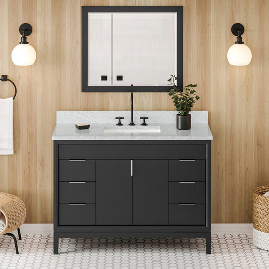 Hardware Resources Jeffrey Alexander Theodora 48" Black Freestanding Vanity With White Carrara Marble Vanity Top, Backsplash and Rectangle Undermount Sink