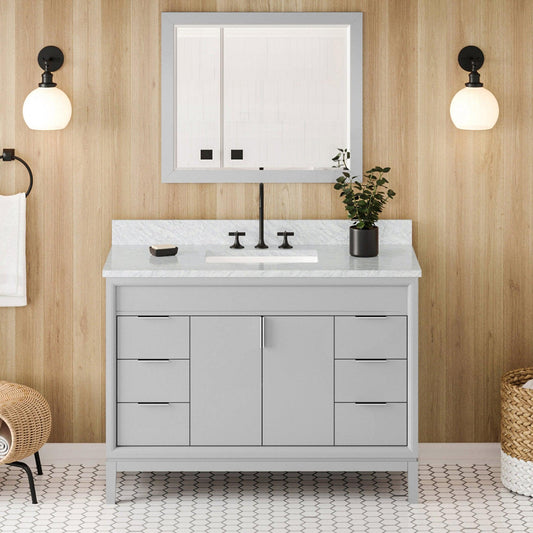 Hardware Resources Jeffrey Alexander Theodora 48" Grey Freestanding Vanity With White Carrara Marble Vanity Top, Backsplash and Rectangle Undermount Sink