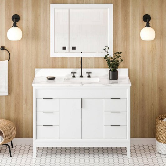 Hardware Resources Jeffrey Alexander Theodora 48" White Freestanding Vanity With Calacatta Vienna Quartz Vanity Top, Backsplash and Rectangle Undermount Sink