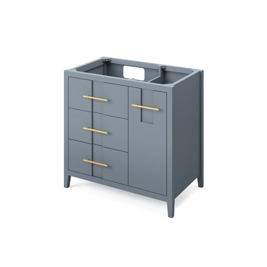 Hardware Resources Jeffrey Alexander Katara 36" Hale Blue Freestanding Vanity With Left Offset, Steel Gray Cultured Marble Vanity Top, Backsplash and Rectangle Undermount Sink