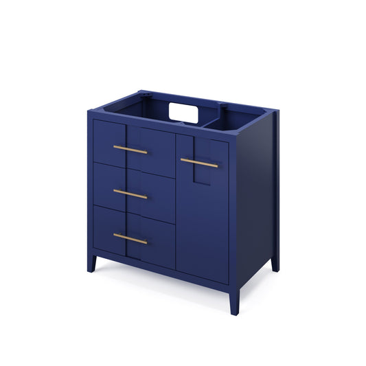 Hardware Resources Jeffrey Alexander Katara 36" Blue Steel Freestanding Vanity With Left Offset, Black Granite Vanity Top, Backsplash and Rectangle Undermount Sink