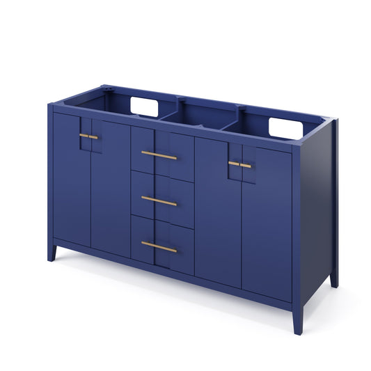 Hardware Resources Jeffrey Alexander Katara 60" Hale Blue Freestanding Vanity With Double Bowl, Black Granite Vanity Top, Backsplash and Rectangle Undermount Sink