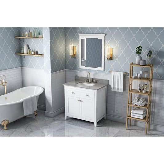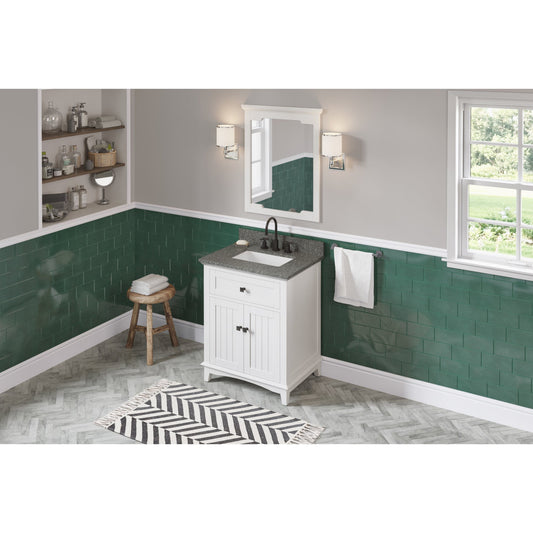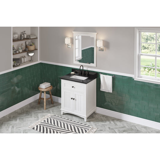 Hardware Resources Jeffrey Alexander Savino 30" White Freestanding Vanity With Black Granite Vanity Top, Backsplash and Rectangle Undermount Sink