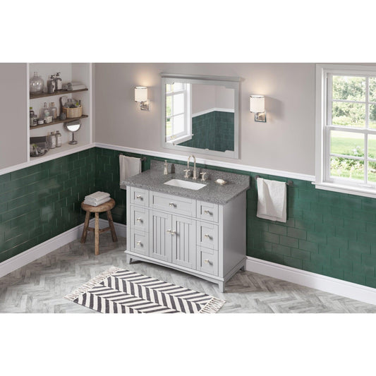 Hardware Resources Jeffrey Alexander Savino 48" Gray Freestanding Vanity With Black Granite Vanity Top, Backsplash and Rectangle Undermount Sink