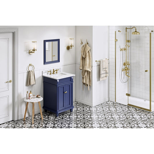 Hardware Resources Jeffrey Alexander Silver Label Douglas 24" Hale Blue Freestanding Vanity With White Carrara Marble Vanity Top, Backsplash and Rectangle Undermount Sink