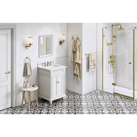Hardware Resources Jeffrey Alexander Silver Label Douglas 24" White Freestanding Vanity With White Carrara Marble Vanity Top, Backsplash and Rectangle Undermount Sink