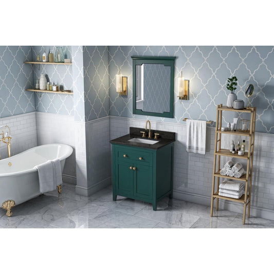 Hardware Resources Jeffrey Alexander Chatham 30" Green Freestanding Vanity With Black Granite Vanity Top, Backsplash and Rectangle Undermount Sink