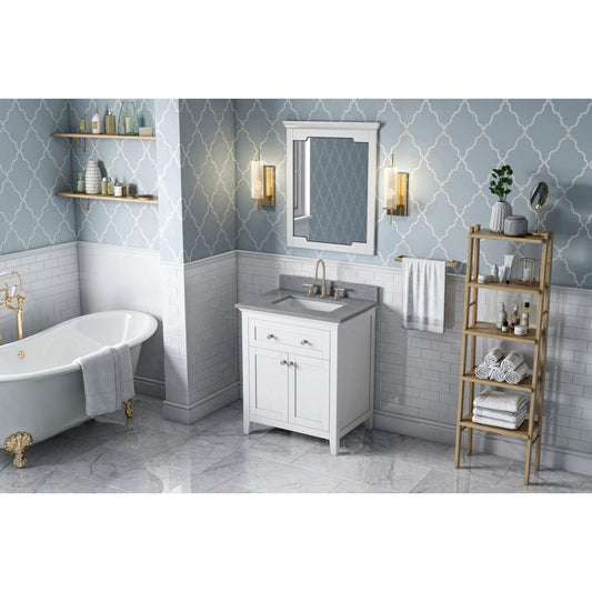 Hardware Resources Jeffrey Alexander Chatham 30" White Freestanding Vanity With Steel Gray Cultured Marble Vanity Top, Backsplash and Rectangle Undermount Sink