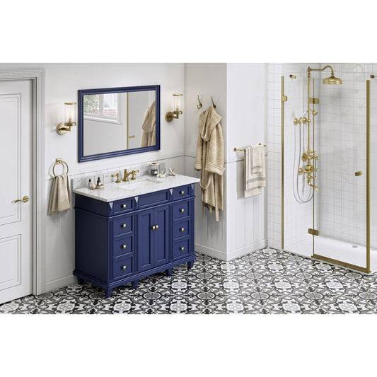 Hardware Resources Jeffrey Alexander Silver Label Douglas 48" Hale Blue Freestanding Vanity With White Carrara Marble Vanity Top, Backsplash and Rectangle Undermount Sink
