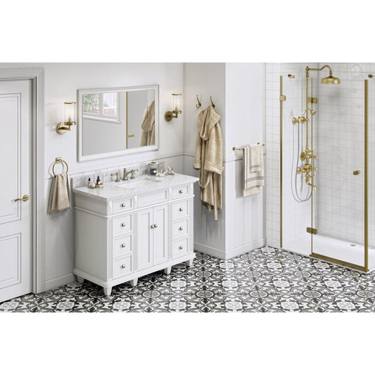 Hardware Resources Jeffrey Alexander Silver Label Douglas 48" White Freestanding Vanity With White Carrara Marble Vanity Top, Backsplash and Rectangle Undermount Sink