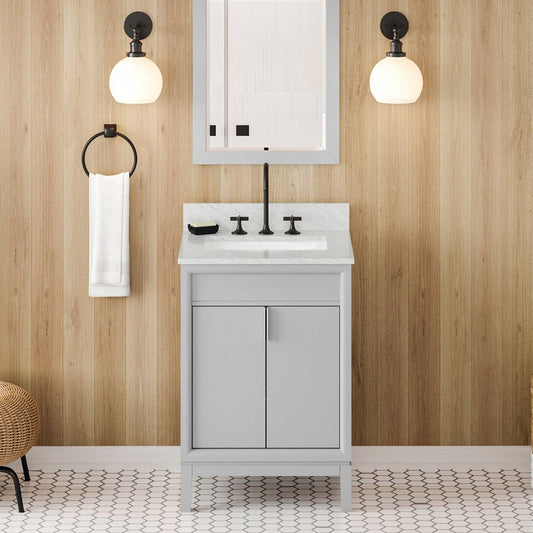 Hardware Resources Jeffrey Alexander Theodora 24" Grey Freestanding Vanity With White Carrara Marble Vanity Top, Backsplash and Rectangle Undermount Sink
