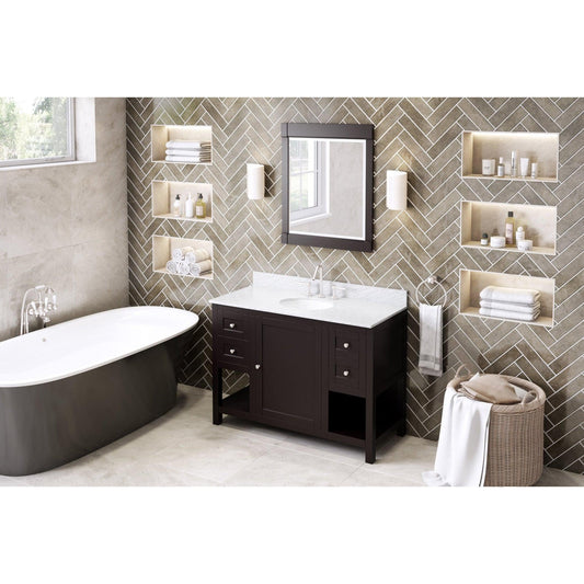 Hardware Resources Jeffrey Alexander Astoria 48" Espresso Freestanding Vanity With White Carrara Marble Vanity Top, Backsplash and Rectangle Undermount Sink