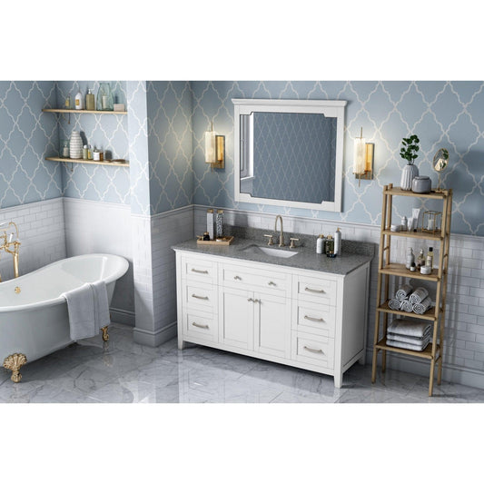 Hardware Resources Jeffrey Alexander Astoria 48" White Freestanding Vanity With Black Granite Vanity Top, Backsplash and Rectangle Undermount Sink