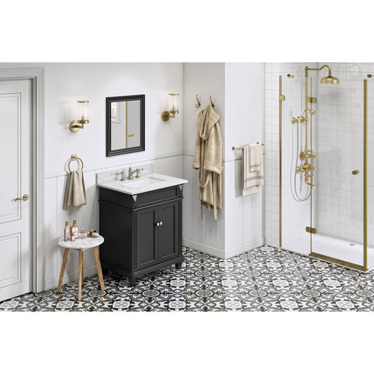 Hardware Resources Jeffrey Alexander Silver Label Douglas 30" Black Freestanding Vanity With White Carrara Marble Vanity Top, Backsplash and Rectangle Undermount Sink