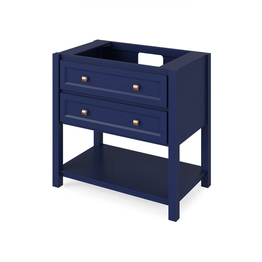 Hardware Resources Jeffrey Alexander Silver Label Adler 36" Hale Blue Freestanding Vanity With Black Granite Vanity Top, Backsplash and Rectangle Undermount Sink