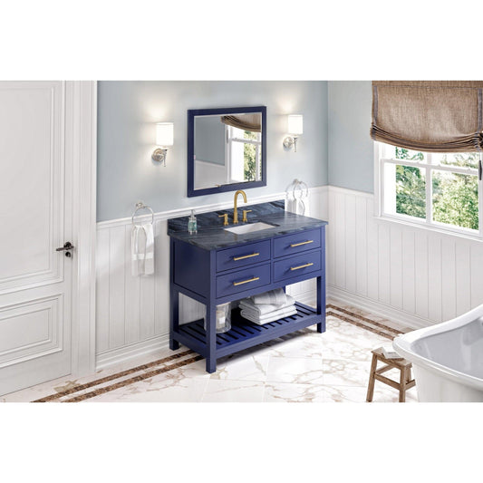 Hardware Resources Jeffrey Alexander Wavecrest 48" Hale Blue Freestanding Vanity With Gray Marble Vanity Top, Backsplash and Rectangle Undermount Sink