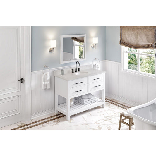 Hardware Resources Jeffrey Alexander Wavecrest 48" White Freestanding Vanity With Arctic Stone Cultured Marble Vanity Top, Backsplash and Oval Undermount Sink
