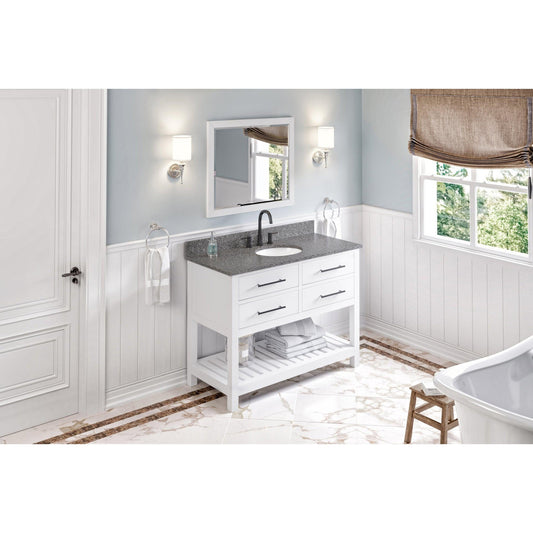 Hardware Resources Jeffrey Alexander Wavecrest 48" White Freestanding Vanity With Black Granite Vanity Top, Backsplash and Oval Undermount Sink