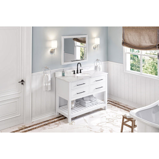 Hardware Resources Jeffrey Alexander Wavecrest 48" White Freestanding Vanity With Calacatta Vienna Quartz Vanity Top, Backsplash and Rectangle Undermount Sink