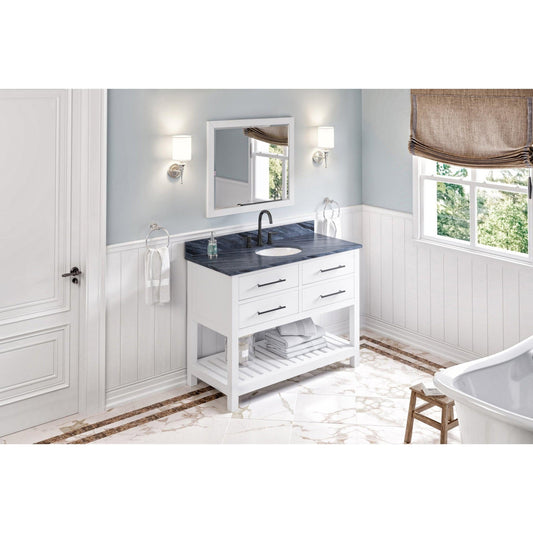 Hardware Resources Jeffrey Alexander Wavecrest 48" White Freestanding Vanity With Blue Limestone Vanity Top, Backsplash and Oval Undermount Sink