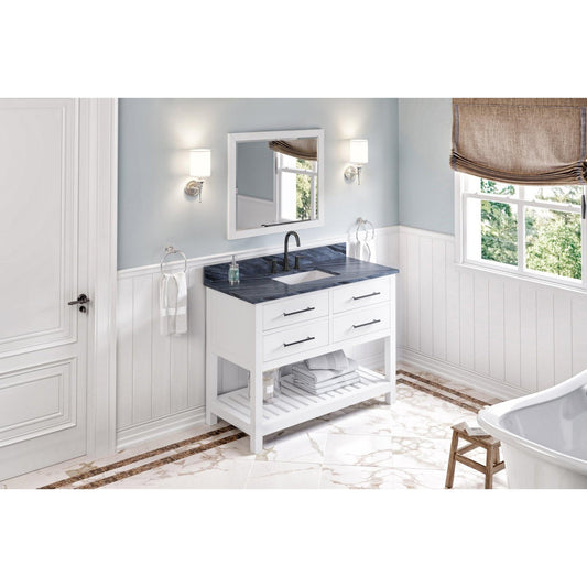 Hardware Resources Jeffrey Alexander Wavecrest 48" White Freestanding Vanity With Blue Limestone Vanity Top, Backsplash and Rectangle Undermount Sink