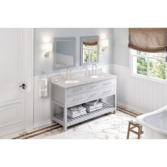 Hardware Resources Jeffrey Alexander Wavecrest 60" Gray Freestanding Vanity With Double Bowl, Arctic Stone Cultured Marble Vanity Top, Backsplash and Oval Undermount Sink