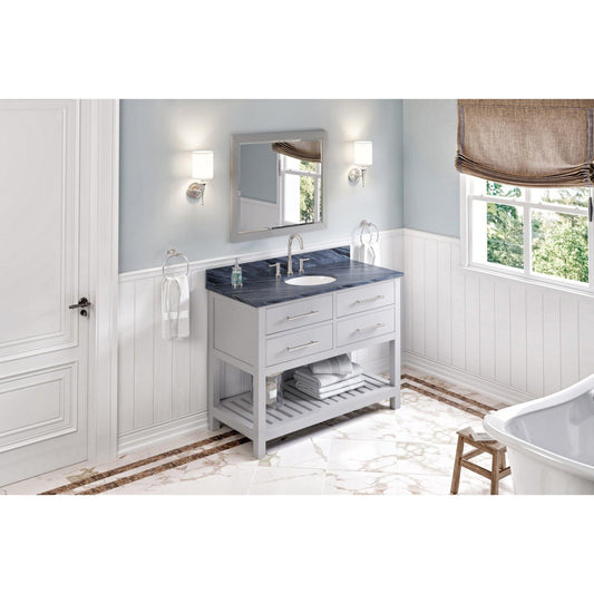 Hardware Resources Jeffrey Alexander Wavecrest 48" Hale Blue Freestanding Vanity With Gray Marble Vanity Top, Backsplash and Oval Undermount Sink