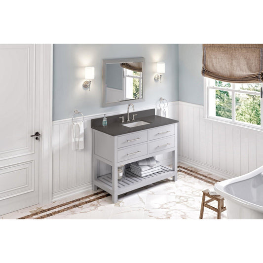 Hardware Resources Jeffrey Alexander Wavecrest 48" Gray Freestanding Vanity With Gray Quartz Vanity Top, Backsplash and Rectangle Undermount Sink