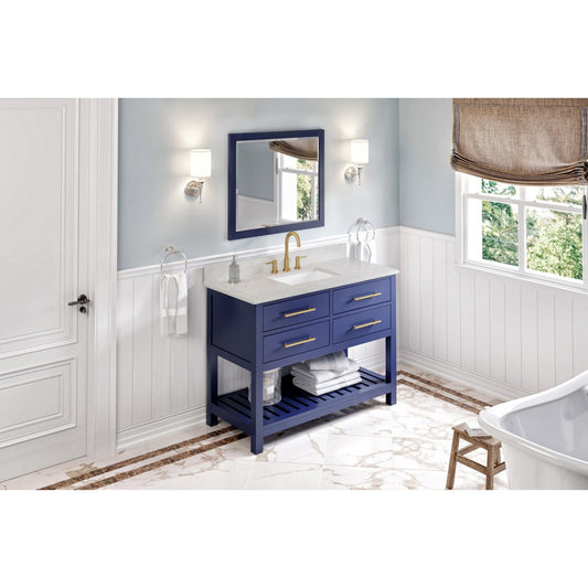 Hardware Resources Jeffrey Alexander Wavecrest 48" Hale Blue Freestanding Vanity With Calacatta Vienna Quartz Vanity Top, Backsplash and Rectangle Undermount Sink