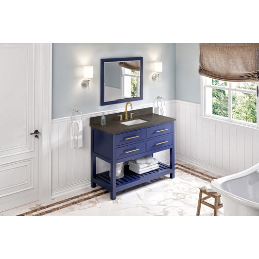 Hardware Resources Jeffrey Alexander Wavecrest 48" Hale Blue Freestanding Vanity With Black Granite Vanity Top, Backsplash and Rectangle Undermount Sink